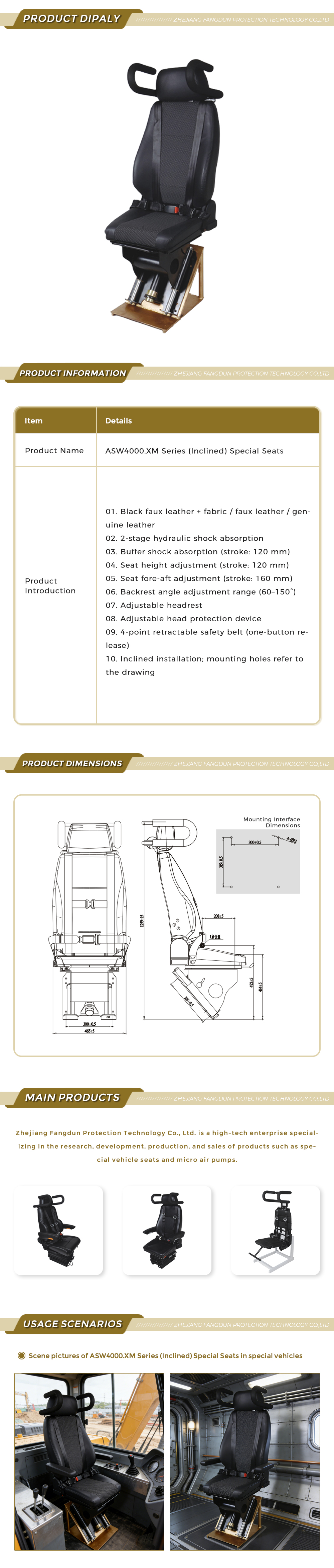 Este assento especial inclinado ajustável para veículos personalizados é um assento especial de alta qualidade projetado exclusivamente para vários veículos personalizados. Combina conforto, estabilidade e segurança, amplamente adequado para veículos modificados, veículos de operação especial, veículos de engenharia e cenários marítimos, tornando-o a escolha ideal para assentos profissionais de veículos especiais personalizados e assentos de equipamentos especiais. O assento adota uma estrutura de metal integrada de alta resistência, combinada com couro ecológico resistente ao desgaste e espuma retardadora de chamas de alta elasticidade, que é durável e resistente à deformação para uso a longo prazo, atendendo a rígidos padrões de aplicação em veículos. Equipado com um sistema central de micro bomba de ar, ele suporta inclinação em vários ângulos e ajuste do airbag lombar, permitindo a troca rápida de posições sentadas com um clique para aliviar efetivamente a fadiga ao dirigir em longas distâncias. Como assento de segurança automotiva de alto padrão, este produto atende rigorosamente às regulamentações internacionais de segurança veicular, equipado com trilhos deslizantes reforçados, suportes anti-impacto lateral e interfaces de cinto de segurança de três pontos. Foi aprovado em testes de impacto e vibração, proporcionando proteção confiável para motoristas e passageiros em condições de estrada complexas. O assento permite personalização de tamanho, material, cor e funções, adaptando-se ao espaço de instalação e aos requisitos de aplicação de diferentes modelos de veículos. Ele pode ser perfeitamente adaptado a operações especiais, modificação de negócios e transporte marítimo. Apresentando design leve e estrutura estável, é fácil de instalar e manter, adequado para vários mercados de modificação de veículos comerciais e especiais no exterior. Aderindo aos padrões de qualidade de exportação, controlamos rigorosamente os processos de produção e testes, fornecendo aos clientes globais soluções de assentos personalizadas duráveis, seguras e confortáveis para melhorar a qualidade do interior do veículo e a experiência de condução.